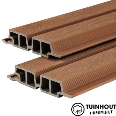 Geef je gevel een warme en stijlvolle uitstraling met dit composiet blokprofiel dubbel in de karakteristieke teak kleur. De fijne houtnerf zorgt voor een realistische houtstructuur, terwijl het duurzame composietmateriaal jarenlang kleur- en vormvast blijft zonder beits- of schilderwerk. Het dubbele blokprofiel van 33 × 170 mm creëert een strak en gelijkmatig gevelbeeld dat ideaal is voor zowel moderne woningen als klassieke renovaties. Dankzij de uitstekende weerbestendigheid blijft je gevel in topconditie, zelfs bij intensief buitengebruik. Beschikbare lengtes: 290 cm en 390 cm (indien van toepassing). Voordelen Warme teak tint met verfijnde houtnerf Onderhoudsarm: geen schilder- of oliebehandeling nodig Duurzaam, stabiel en bestand tegen UV, vocht en vorst Dubbel blokprofiel voor een rustig en modern gevelaanzicht Geschikt voor horizontale én verticale montage
