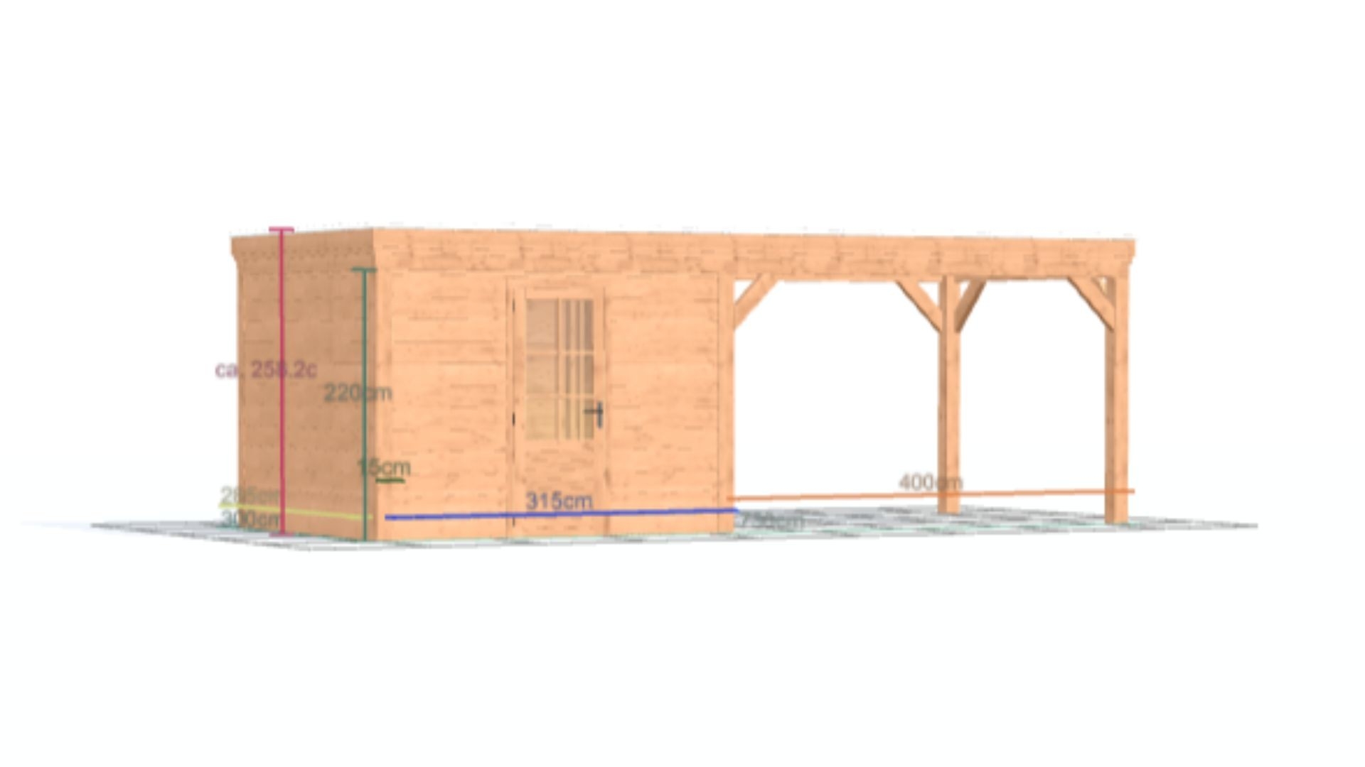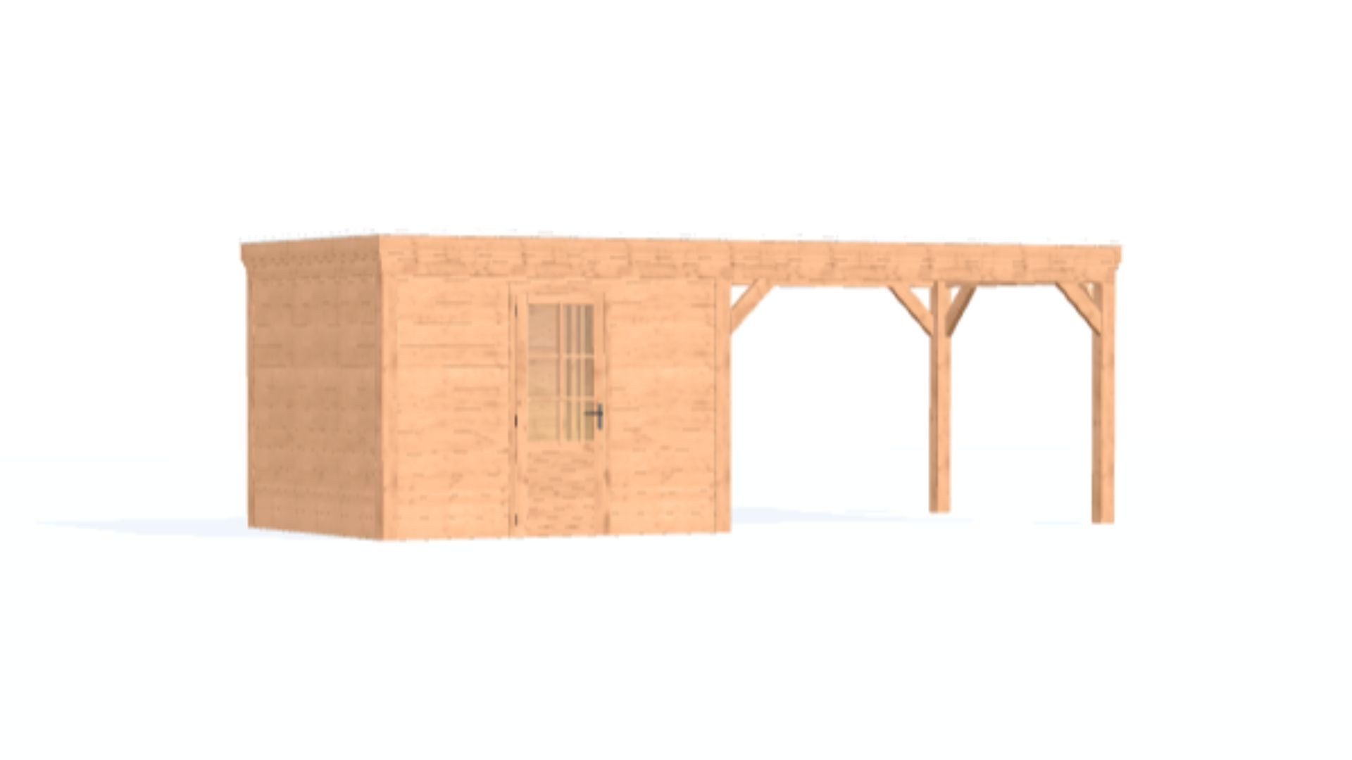 Douglas overkapping met plat dak - Comfort zonder overstek, met berging