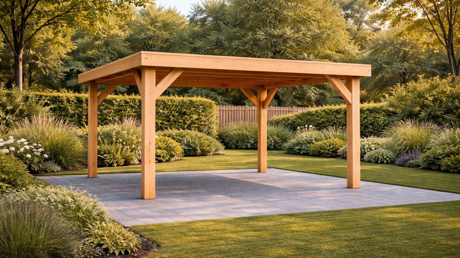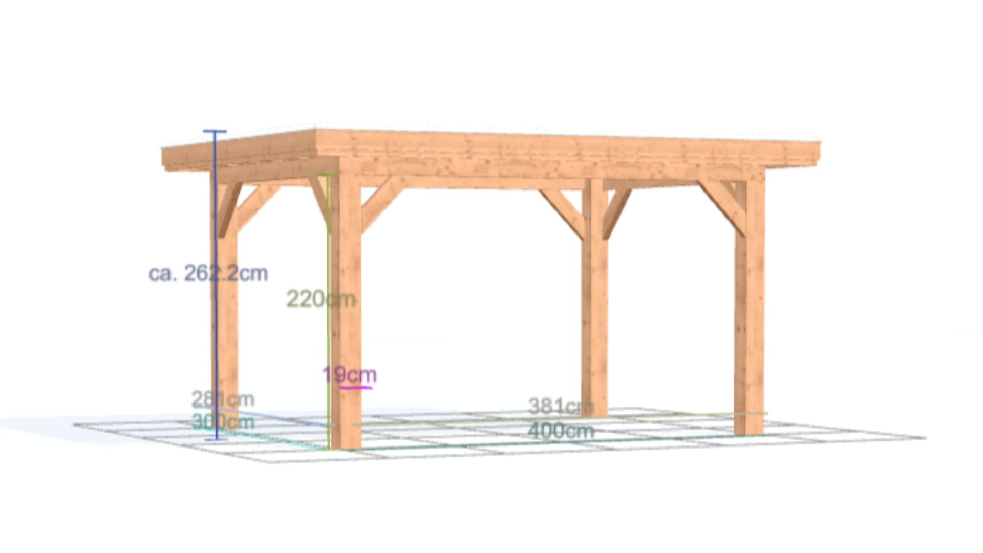 Douglas overkapping met plat dak - Robuust met overstek geschaafd