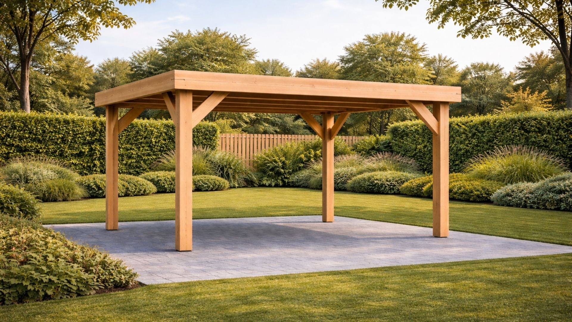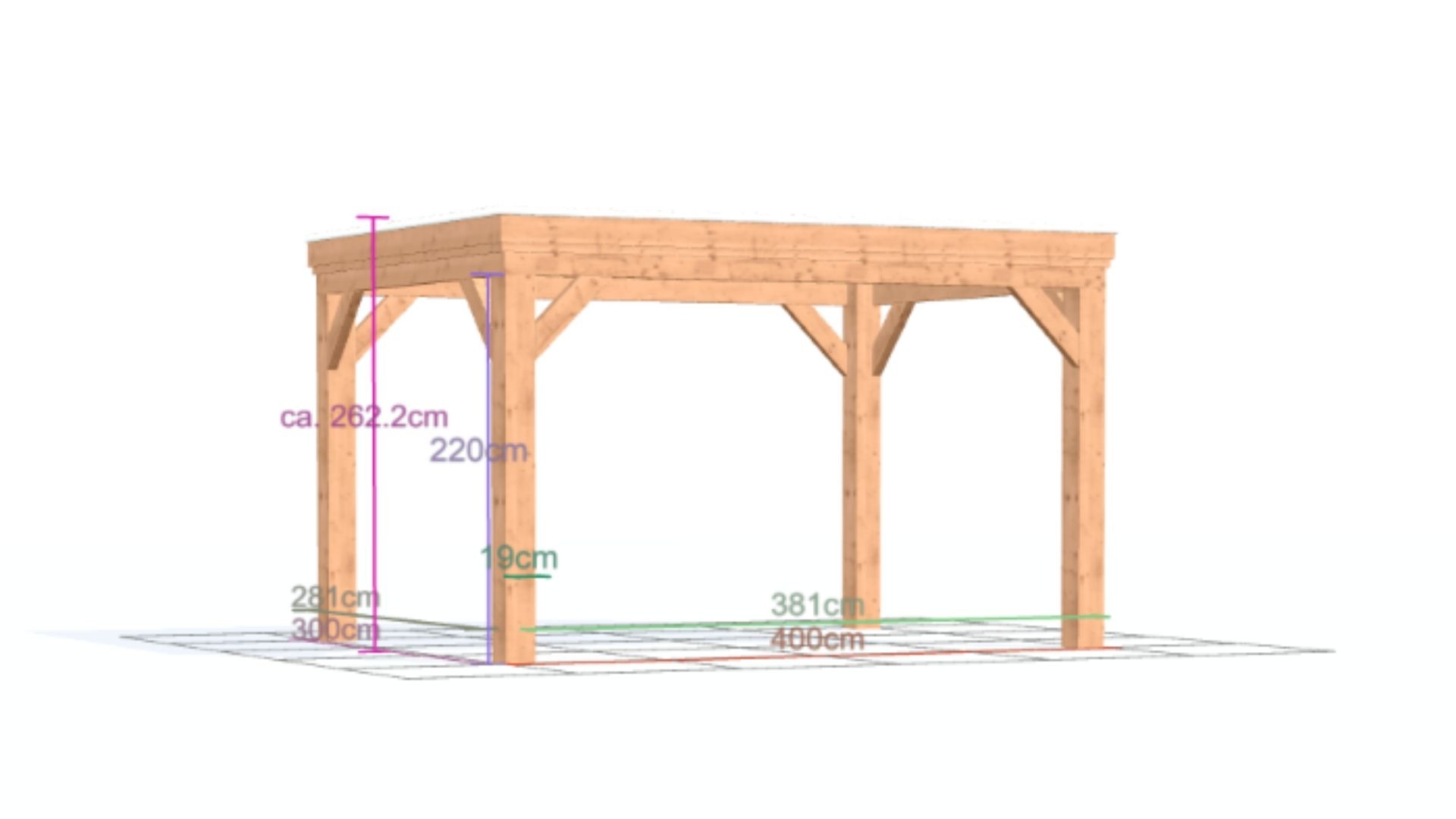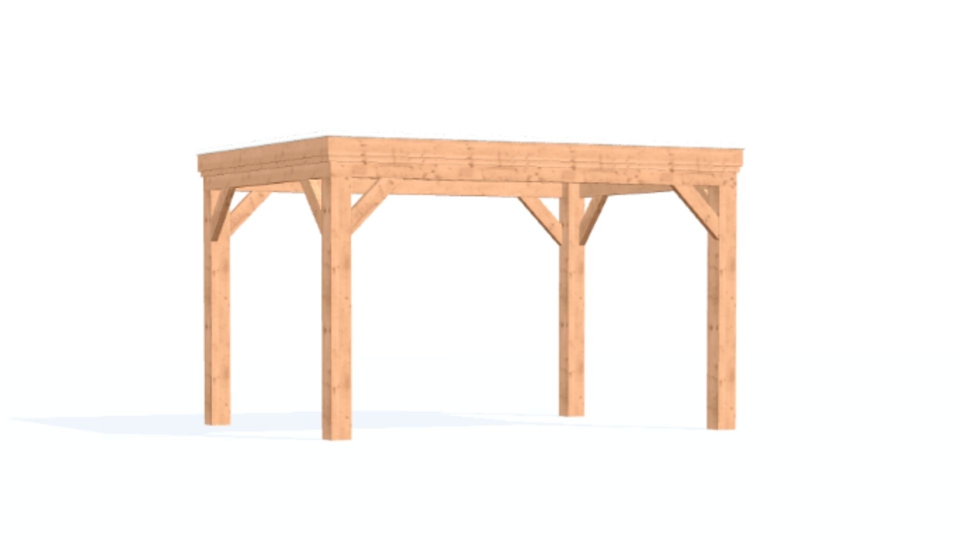 Douglas overkapping met plat dak - Robuust zonder overstek geschaafd