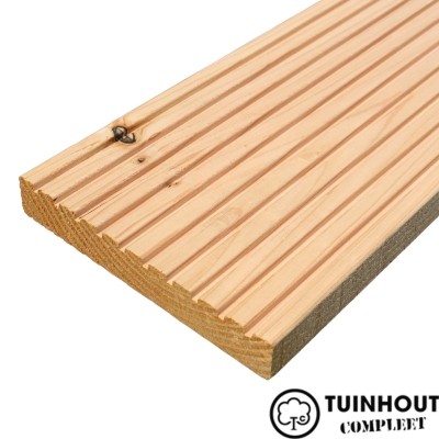 Gaat u een terras of vlonder aanleggen? Maak dan gebruik van de douglas vlonderplank 26x190 voor een prachtig resultaat. De vlonderplanken zijn aan één zijde voorzien van een grof profiel. U kiest zelf uit welke structuur u gebruikt voor uw terras. Omdat het hout is gedroogd naar 18 procent werken de planken minder. Om uw vlonder te maken plaatst u de planken 8 mm uit elkaar en bevestig de terrasplanken op hardhouten of onze Douglas regels. Deze regels bevestigt u om de 40 cm op een tegel of op onze Verstelbare terrasdrager. Schroef de planken vervolgens vast met Gevel/vlonderschroef RVS van 5.0×50. Tip: Verzekerd zijn van een prachtige uitstraling én lange levensduur? Dan adviseren wij om de planken ieder jaar te behandelen met Remmers tuinhoutolie. Deze tuinhoutolie is verkrijgbaar in Remmers tuinhoutolie kleurloos basic, Remmers tuinhoutolie kleurloos eco en Remmers tuinhoutolie Douglas eco.
