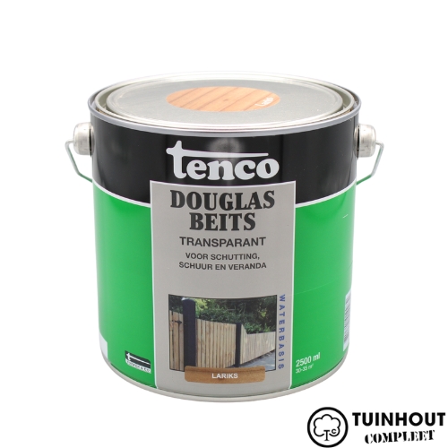 Tenco Douglasbeits Transparant is een duurzame buitenbeits op acrylbasis met water als oplosmiddel. Tenco Douglasbeits is reuk arm en minder belastend voor het milieu. Tenco Douglasbeits accentueert de houtnerf en het beschermt hout tegen weersinvloeden, het is gemakkelijk aan te brengen en sneldrogend. Verwerking mag niet in de volle zon of beneden de 10 °C.