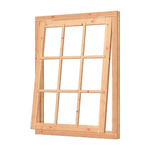 - Materiaal: gedroogd en geschaafd douglas - Producttype: Uitzetraam - Behandeling: onbehandeld - Afmetingen: Breedte= 951mm Hoogte= 1296mm - Afmetingen kozijn: Breedte= 1085mm Hoogte= 1430mm - Inclusief hang en sluitwerk - Enkel glas